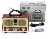 با روی کار آمدن شبکه های مجازی و اینترنت همچنان رادیو طرفداران پرو پا قرص خود را دارد . این دستگاه با طراحی کلاسیک به شکل رادیوهای قدیمی اما با کارکردی امروزی میباشد که توانایی پخش فایل های صوتی با فرمت MP3 را از طریق درگاه ها USB و پورت کارت حافظه SDدارد. رادیوی ميير meier m 111 علاوه بر امکان استفاده از برق شهری ، با داشتن باتری داخلی قابل شارژ در همه جا میتواند همراه خوبی برای شما باشد .در این محصول به دلیل حمل راحت دسته تعبيه شده. با داشتن 4 موج رادیو دیگر نگران از دست دادن برنامه رادیویی مورد علاقه خود نباشید .با خرید این محصول کاربردی شما تنها صاحب یک رادیو نگردیده اید بلکه صاحب یک پلیر قوی هم شده اید .با داشتن آنتن تلسکوپی بر روی دستگاه به راحتی میتوانید در هر مکانی به ایستگاه رادیویی دلخواه خود متصل و از شنیدن رادیو لذت ببرید . این رادیو باداشتن 4 درگاه ورودی :AUX و USB و كارت حافظه در سایز SD و همچنین اتصال از طریق بلوتوث میتواند یک پلیر کاربردی با صدای عالی برای شما باشد با داشتن بدنه ي چوني حس نوستالژي را القا ميكند و با داشتن ريموت كنترل استفاده از اين كالا راحت تر شده .