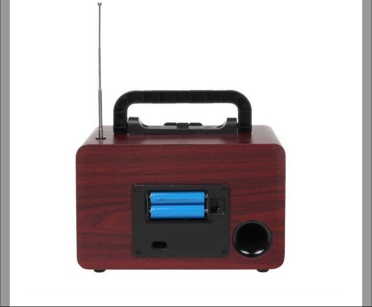 علاوه بر امکان استفاده از برق شهری ، با داشتن قابل تعويض شارژي در همه جا میتواند همراه خوبی برای شما باشد .در این محصول به دلیل حمل راحت دسته تعبيه شده. با داشتن 4 موج رادیو دیگر نگران از دست دادن برنامه رادیویی مورد علاقه خود نباشید .با خرید این محصول کاربردی شما تنها صاحب یک رادیو نگردیده اید بلکه صاحب یک پلیر قوی هم شده اید .با داشتن آنتن تلسکوپی بر روی دستگاه به راحتی میتوانید در هر مکانی به ایستگاه رادیویی دلخواه خود متصل و از شنیدن رادیو لذت ببرید . این رادیو باداشتن 4 درگاه ورودی :AUX و USB و كارت حافظه در سایز SD و همچنین اتصال از طریق بلوتوث میتواند یک پلیر کاربردی با صدای عالی برای شما باشد با داشتن بدنه ي چوني حس نوستالژي را القا ميكند و با داشتن ريموت كنترل استفاده از اين كالا راحت تر شده .بدنه چوبي.داراي دو باتري قابل شارژ همراه كالا