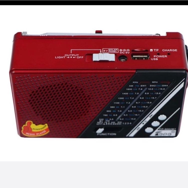 چراغ قوه بزرگ.پاور بانك داخلي .رمخور فلش خور.شارژي.ورودي هدفون.6موج راديو.ابعاد13.5*8.5*4.5 داراي بلوتوث.ورودي هدفون